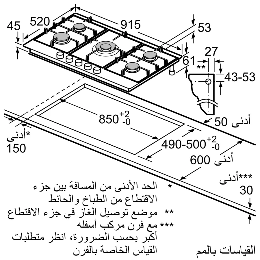 مسطح بوش غاز بلت إن سيريس 6 5 شعلة 90 سم ستانلس ستيل BOSCH PCR9A5B90