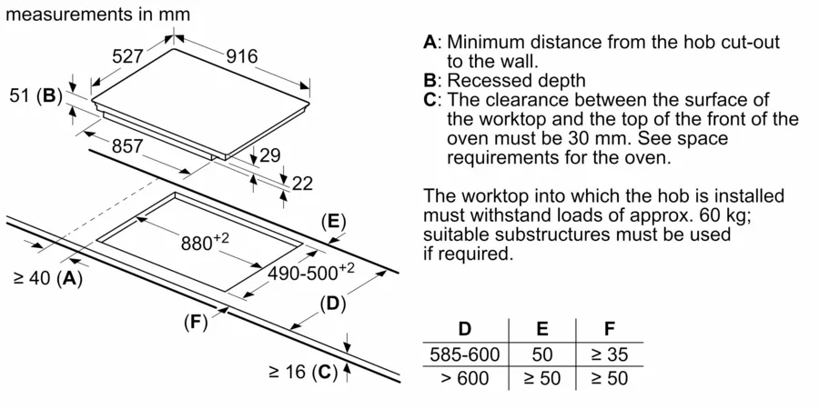 أبعاد التركيب: (الارتفاع × العرض × العمق) 51 مم × 880 مم × 490 مم
