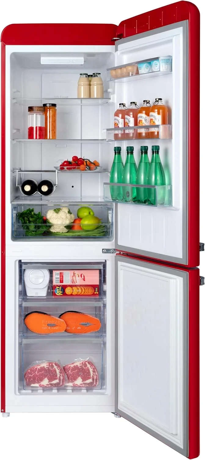 - 【مقبض معدني أنيق】 يضيف المقبض المعدني لمسة من الأناقة إلى التصميم الكلاسيكي، مما يعزز كل من العملية والجمال. هذه الميزة الأنيقة تجعل فتح باب الثلاجة وإغلاقه سلسًا ومريحًا.