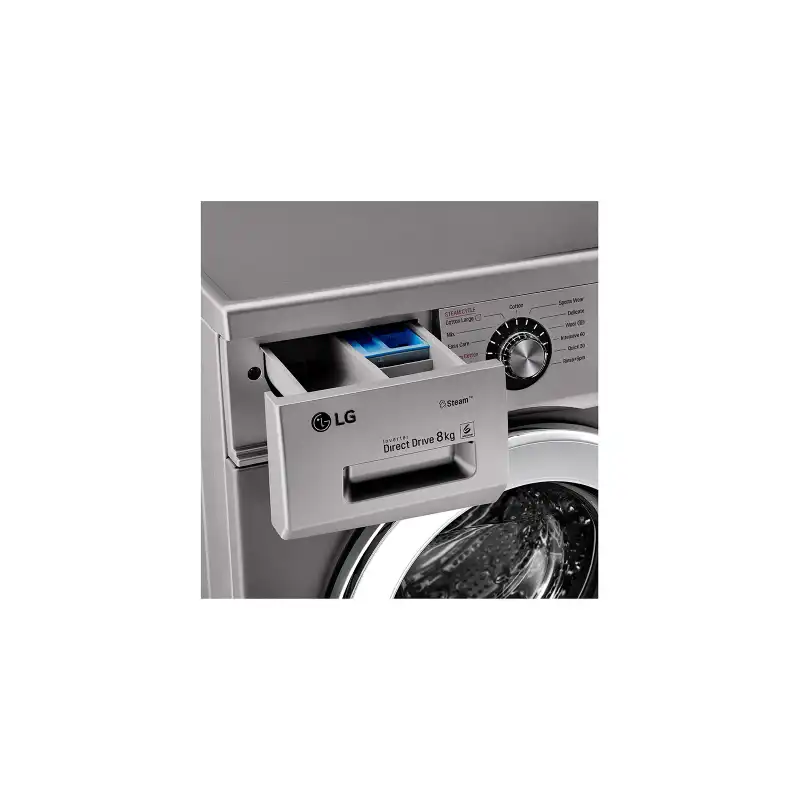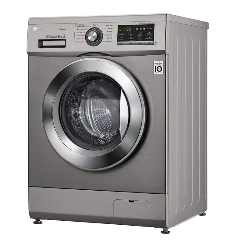 ال جى غسالة ملابس 8 كيلو 1400 لفة بالبخار لون سلفر محرك الدفع المباشر + هدايا FH4G6TDY6