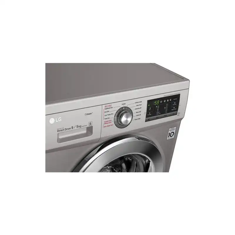 ال جي غسالة ملابس 9 كيلو لفة بالبخار مع مجفف 5 كيلو لون سلفر محرك الدفع المباشر FH4G6VDGG6