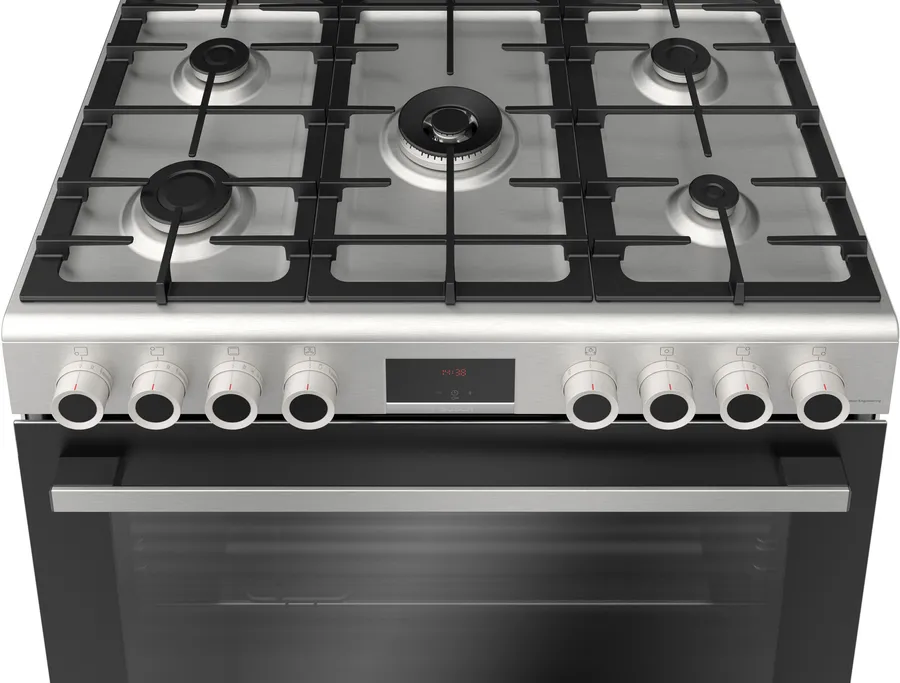 BOSCH GAS COOKER SERIES 6 5 BURNER 90*60 CM CAST IRON STAINLESS STEEL FULL SAFETY HGP3I8W50S