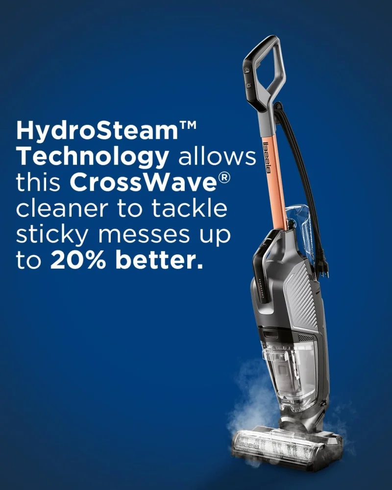 - All-in-One Clean. Vacuum, wash and steam at the same time.HydroSteam Cleans Better. Cleans up to 20% better on tough, sticky messes