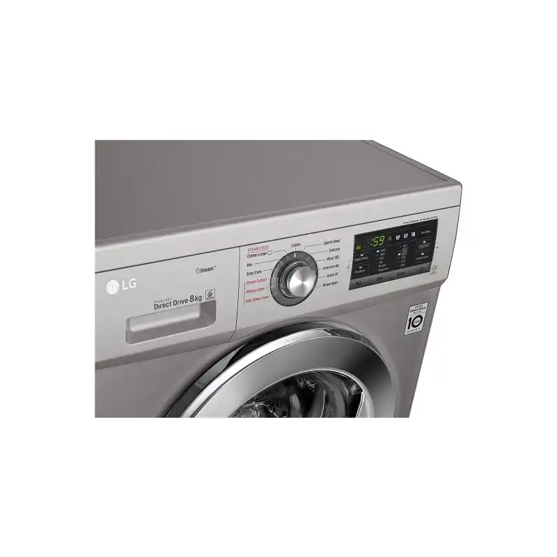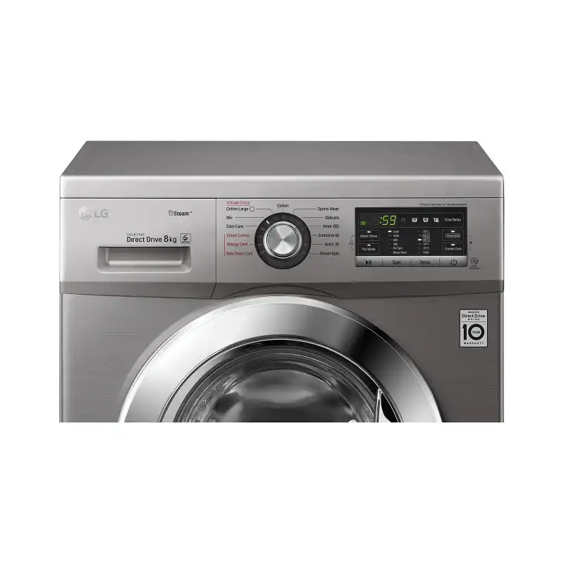 LG Washing Machine 8 Kg Direct Drive 6 Motions Steam Silver Stone + Gifts FH4G6TDY6