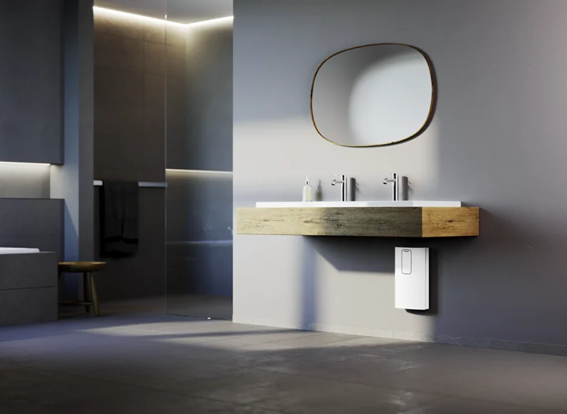 Electronically controlled compact instantaneous water heater with 2i technology for excellent energy efficiency and constant accurate temperature delivery