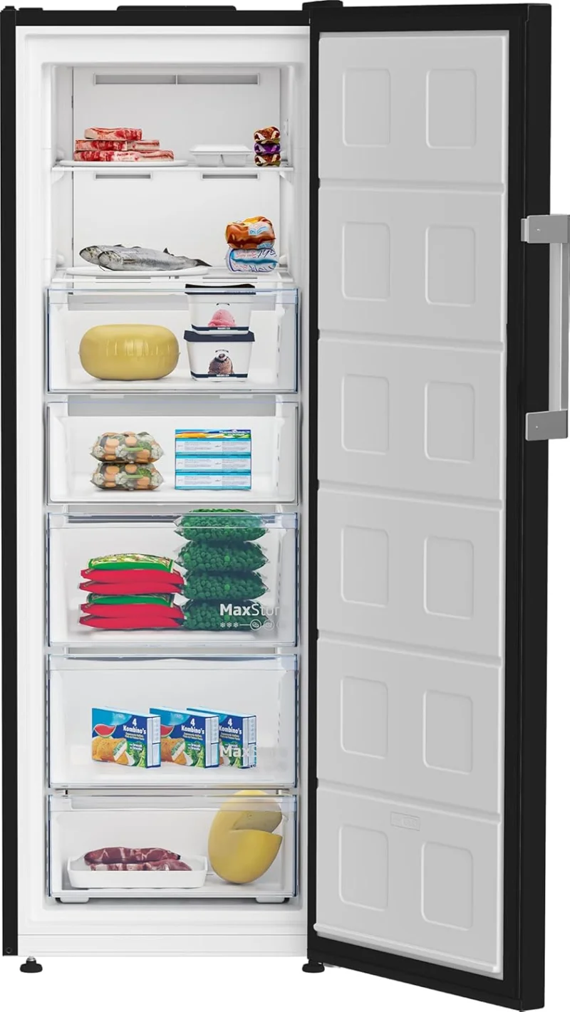 بيكو فريزر عمودي - نو فروست - 8 ادراج (5 ادراج + 3 رفوف) - سعة صافية 286 لتر - تحكم رقمي في العرض - اسود - B3RFNE314ZXPEB1