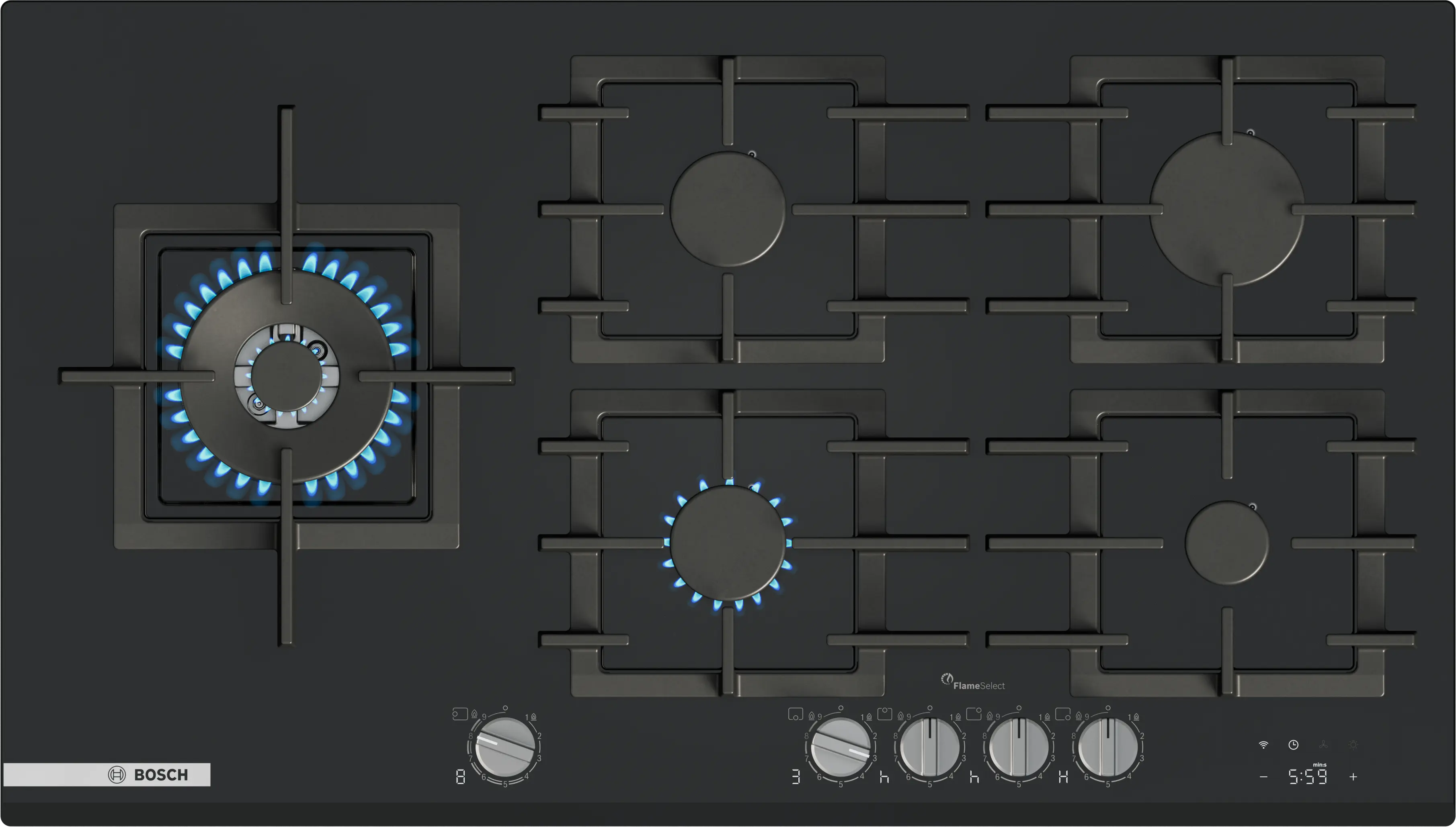 Bosch Gas Hob Built-in Series 8, 5 Burners, 90 cm Tempered Glass, Black PRS9A6H40