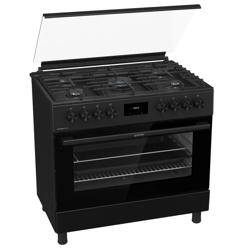 Gorenje Freestanding Gas Cooker 60*90 Cm 5 Burners Cast Iron With Fan Black GGI9C21B