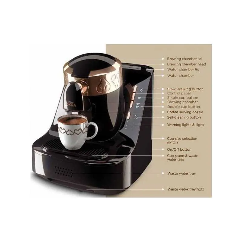 أوكا ماكينة صنع القهوة التركي مزدوجة الاستخدام لون أسود مع فضي ضمان سنة OK002