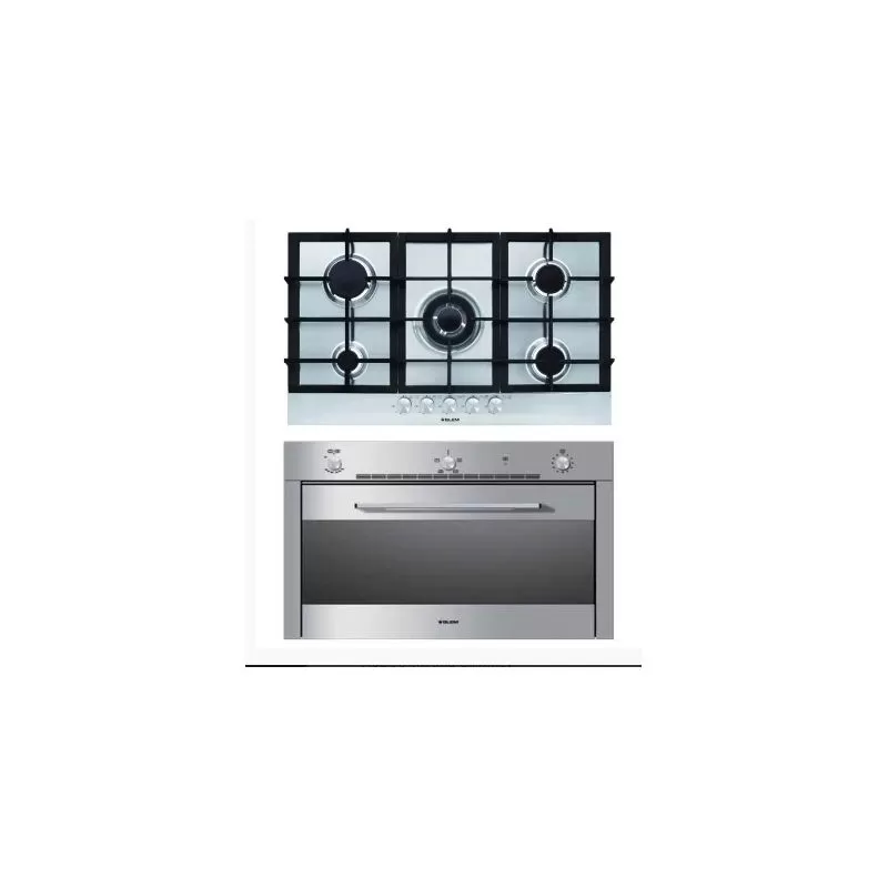 Glem Gas Built-in Gas Oven 90 cm 2 Fans, Gas Hob 90 cm and Chimney GFD9W1IX-GT955HIX