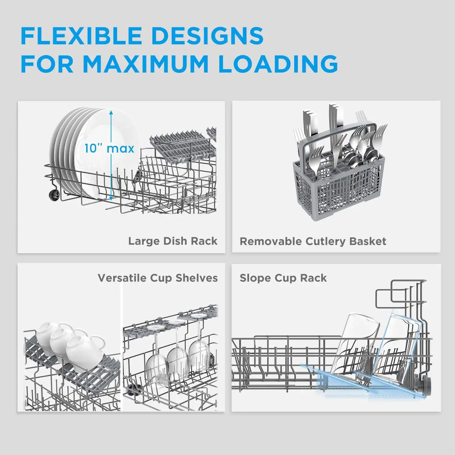 6 Wash Programs:intensive,Normal,ECO,Glass,90 min,Rapid