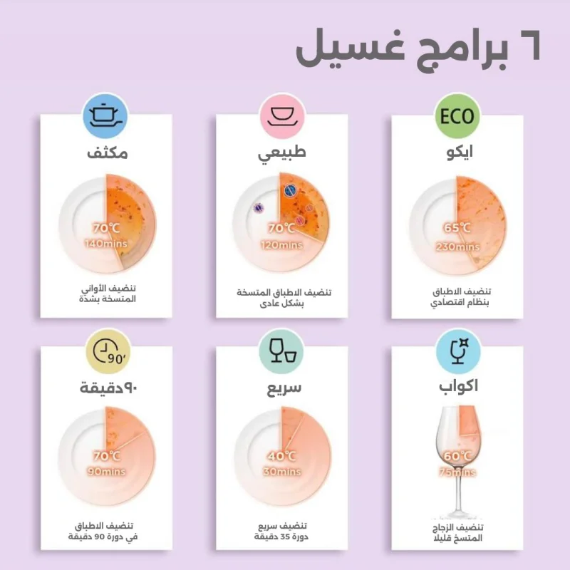 6 Wash Programs:intensive,Normal,ECO,Glass,90 min,Rapid
